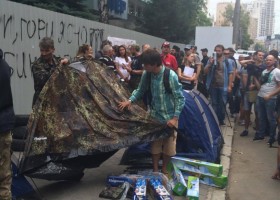Учасники протестів розгортають намети біля будівлі телеканалу "Інтер".
