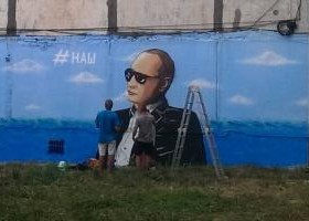 Изображения президента Российской Федерации с хэштегом #НАШ появились во многих городах Крыма