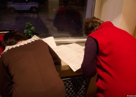 У місті Яготин Київської області у приміщенні ОВК № 98 члени дільничих комісій на колінах переписували протоколи – вносили уточннення.