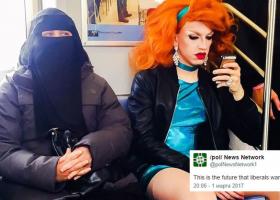 Twitter-аккаунт праворадикальних активістів опублікував фотографію з метро, на якій дівчина в паранджі сидить поруч з трансвеститом і підписав Це майбутнє, якого хочуть ліберали. У Мережі дали їй продовження.