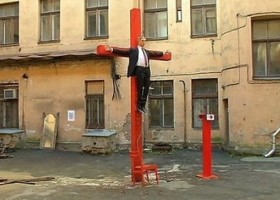 Посольство Росії в Латвії направило ноту в МЗС країни у зв'язку з встановленням в центрі міста інсталяції у вигляді розп'ятого президента РФ Володимира Путіна.