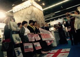 На книжковій виставці у Франкфурті видавці з Грузії влаштували акцію протесту біля російського стенду.