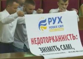 У Верховній Раді розклеювали символіку партії "Рух нових сил" колишнього голови Одеської ОДА Міхеіла Саакашвілі, що обурило керівництво парламенту.