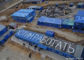 Рабочие одной из компаний, задействованных в строительстве космодрома Восточный, написали обращение к президенту РФ на крышах вагончиков-бытовок.