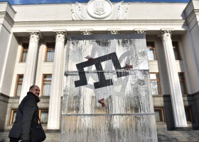 Сьогодні вранці невідомі активісти встановили крижаний монумент, всередині якого український тризуб з'єднаний з гербом кримських татар