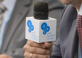 Организаторы встречи Ялтинской европейской стратегии (YES) показали видео для европейских гостей на открытии форума.
