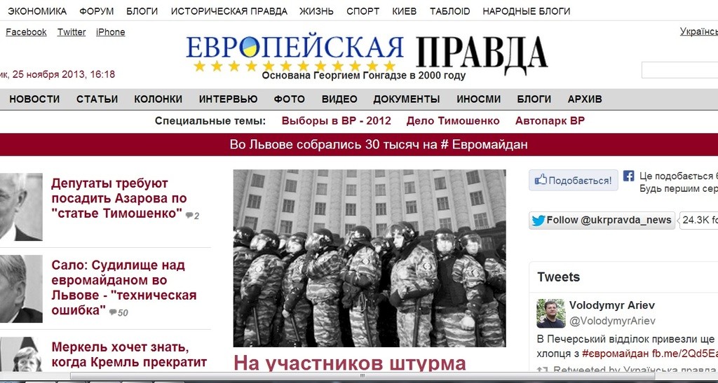 Главный редактор газеты Алена Притула рассказала Slon, что это временная мера – в знак солидарности с участниками евро-Майдана и всеми, кто протестует против решения правительства приостановить процедуру подписания соглашения об ассоциации с ЕС.