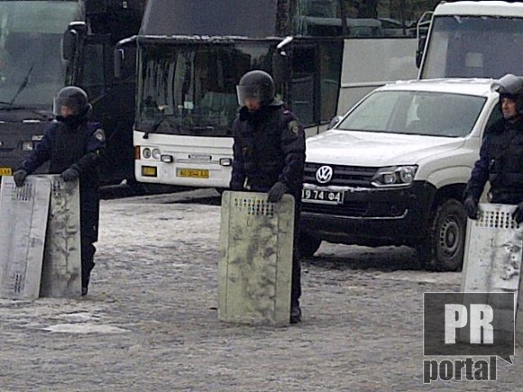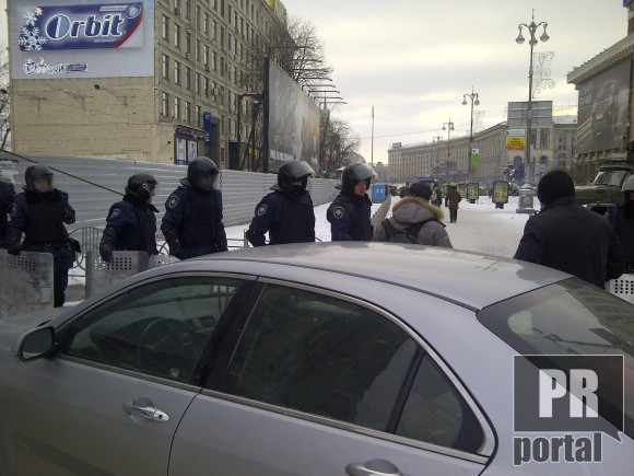 Чтобы пройти к Майдану со стороны Европейской площади придется "знакомиться" с представителями внутренних войск.