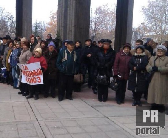 Участники акции держали в руках плакаты с надписями: «За таможенный союз», «Не позволим Европе диктовать нам условия», «Крымчане за национальные интересы»,пишут Комментарии
