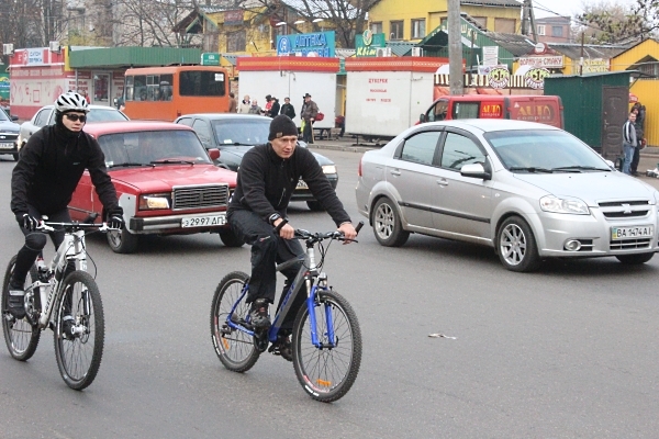 Ну, а к повозке Андрей Табалов подъехал на велосипеде.