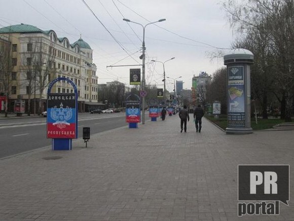 В обласном центре, на площади Ленина, множество ситилайтов рекламируют "Донецкую республику"