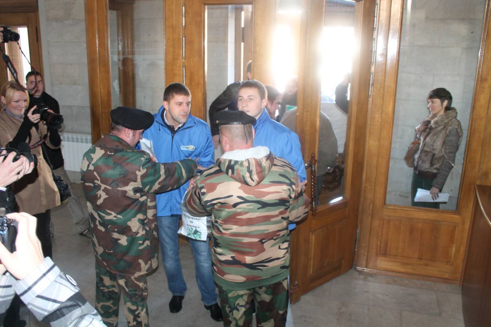 Відро на вигляд свіженького й апетитного, до речі, зовсім не дрібного, оселедцю збиралися віддати особисто у руки, проте охоронці не пустили, мотивувавши тим, що міська рада - не їдальня. Володимир Каніщев до протестників вийшов, проте рибного продукту до рук не взяв і жодним чином не відреагував на те, що діялося.