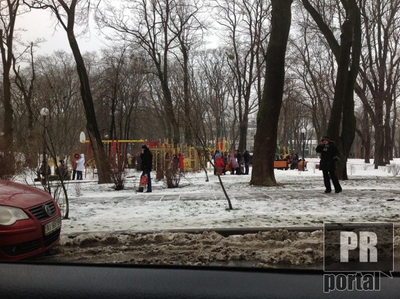 "Найпрекрасніший парк Києва -Маріінка - окупований фанами президента. Фоткаються на дитячих гойдалках, плюються, палять, п'ють. Дехто вже ледь стоіть на ногах"