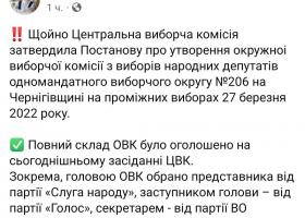 Головою ОВК обрано представника від партії «Слуга народу», заступником голови ОВК – від партії «Голос», секретарем – від партії ВО «Батьківщина