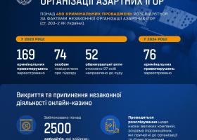 Про підозру повідомили 21 особі. До суду скерували обвинувальні акти стосовно 72 осіб, в тому числі 7 обвинувальних актів щодо 68 учасників злочинних угруповань.