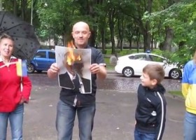 Во Львове под консульством РФ активисты пели про Путина и жгли его фотографии.