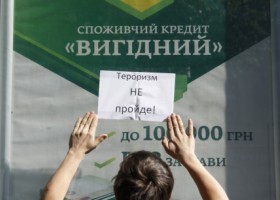 Во Львове облили красной краской витрины отделения "Сбербанка России", одну из витрин разбили.