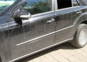 На капоте Mercedes была выцарапана пятиконечная звезда.