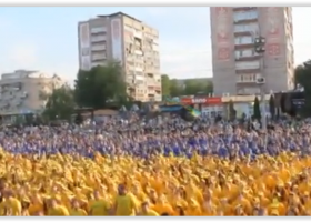 Более четырех тысяч жителей Черкасс и по одному представителю из каждой другой области присели в четверг 25 раз на Соборной площади Черкасс в знак единой и неделимой Украины.