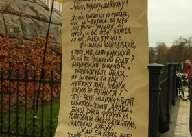 В день Покрова и Дня Украинского казачества активисты движения "Украинская Патриотическая Альтернатива" написали письмо Президенту России Владимиру Путину на Софиевской площади в Киеве возле памятника Богдану Хмельницкому.