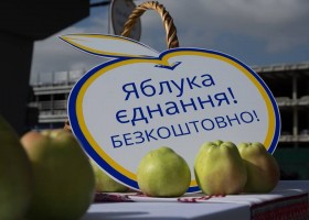 «Добрі яблучка, сама ростила, фото Путіна вішала, щоб нічого їх непоїло», - закликала дівчина Наталя, роздаючи ябулка