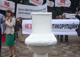 Активісти Центру протидії корупції провели під будівлею Верховної Ради акцію під назвою "Не зливайте антикорупційну прокуратуру", повідомляє кореспондент Gazeta.ua.