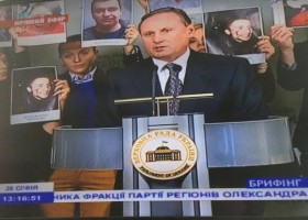 Лидер фракции Партии регионов Александр Ефремов во время брифинга в Верховной Раде извинился от имени власти за избитых на Майдане журналистов.