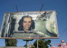 1 августа в Житомире возле Богунского райсовета появился билборд с фотографией 25-летнего Артема Абрамовича, который пропал 12 августа под Степановкой Донецкой области.