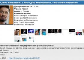 Відомого російського співака Діму Білана внесено у базу сайту «Миротворець» за відвідування Криму після анексії півострова.