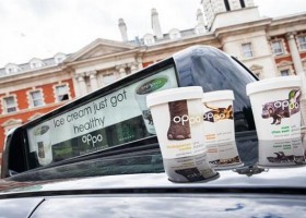 Бренд мороженого Oppo осуществил размещение, привязанное к температуре воздуха, на цифровых рекламных конструкциях на крышах такси.
