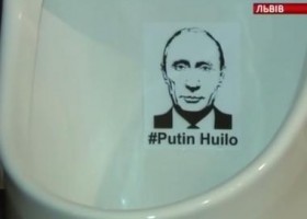 Туалетний креатив. Портрет російського президента Путіна наклеїли у пісуари в одному із ресторанів Львова.