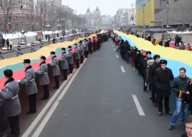 У центрі Києва відбулася символічна хода з 200-метровими прапорами України та Литви