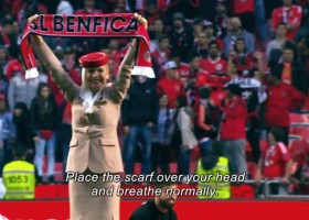 Необычное шоу с участием стюардесс устроил спонсор "Бенфики" компания Fly Emirates перед домашним матчем чемпионата Португалии со "Спортингом".