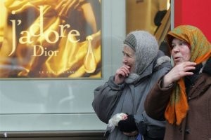 А частка тих, хто вважає себе середнім класом скоротилася в 2,7 рази — з жалюгідних 1,9% в 2008 р. до 0,7% в 2015-м. В півтора рази скоротилася частка домогосподарств, які відносять себе до "проміжної категорії" між бідними, але і не середнім класом, — з 41,2 до 27,0%.