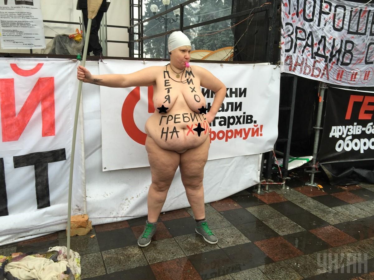 На її тілі був нецензурний напис, адресований лідеру "Руху нових сил" Михеїлу Саакашвілі та президенту України Петру Порошенку.