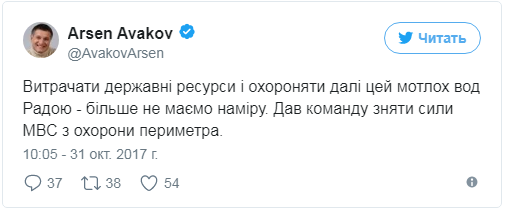 "Витрачати державні ресурси і охороняти далі цей мотлох під Радою - більше не маємо наміру. Дав команду зняти сили МВС з охорони периметра", - наголосив він.