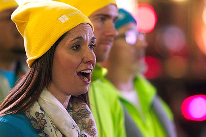 Cотрудники Microsoft, для рождественской рекламы, спели у магазина Apple