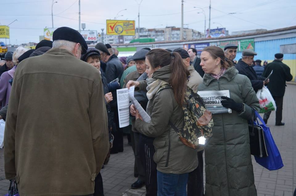 "На превеликий сором та нашу з вами ганьбу, в Києві на станції метро «Героїв Дніпра» зранку збираються черги з сотень читачів, які приходять по безкоштовну пропаганду Кремля. І ці люди сьогодні не гребували лаятись і матюкатись на дівчат, що були на передовій АТО, та на інших активістів. А вершиною цинізму став галас одного з чоловіків, який став посилати солдаток в АТО, мовляв, ідіть воювати на Схід, а не заважайте тут брати газету.У Донецьк також не відразу зайшли російські війська, сепаратисти не відразу захопили адміністративні будівлі. Ні, все починалося з промивання мізків ворожою пропагандою.", - повідомляють активісти на сторінці у Фейсбук.
