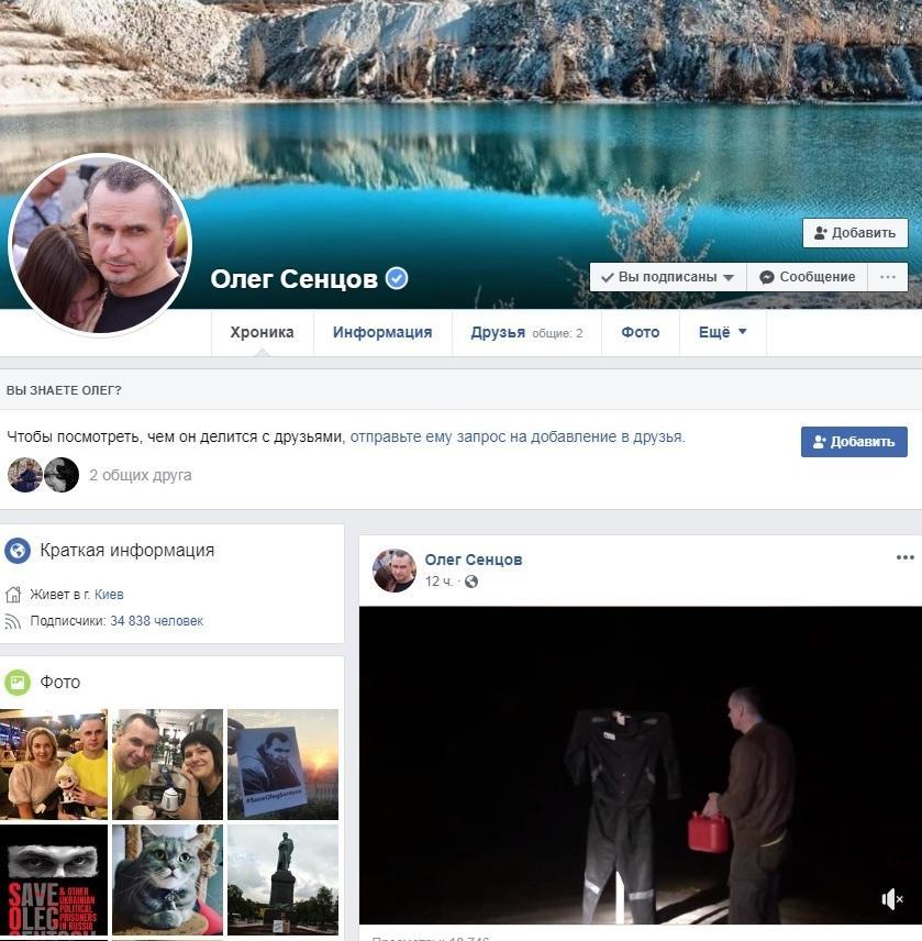 Сторінка Олега Сенцова у Facebook за посиланням.