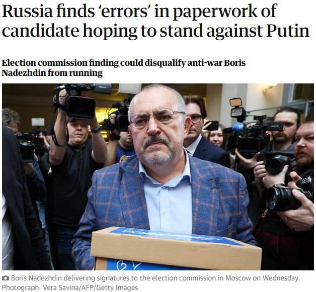 Guardian: У росії знайшли "помилки" в документах антивоєнного кандидата