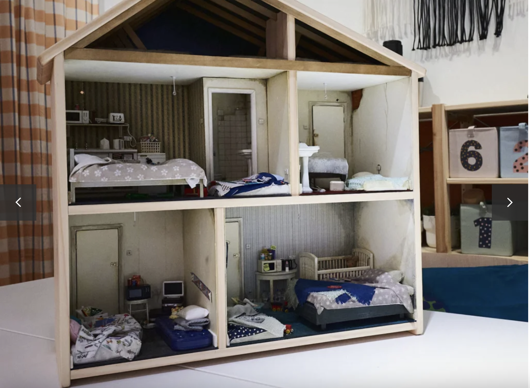 Цей переосмислений ляльковий будиночок різко контрастує з ідилічними мініатюрами, що зазвичай асоціюються з дитячими іграми. Натомість він демонструє тривожні деталі, взяті з реальних історій сімей, що живуть у тимчасових помешканнях: стіни, вкриті пліснявою, щури, відкрита та небезпечна електропроводка, тісний житловий простір.