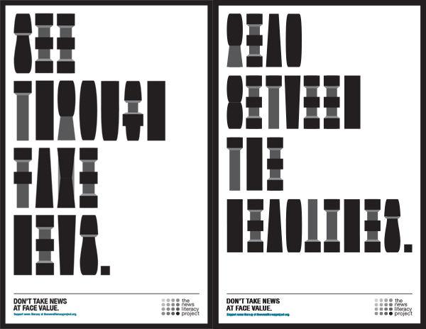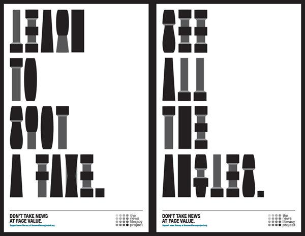 News Literacy Project (NPL) вместе с агентством J. Walter Thompson New York создали серию принтов, призывающих людей «видеть все углы» новости и проверять надежность ее источника.