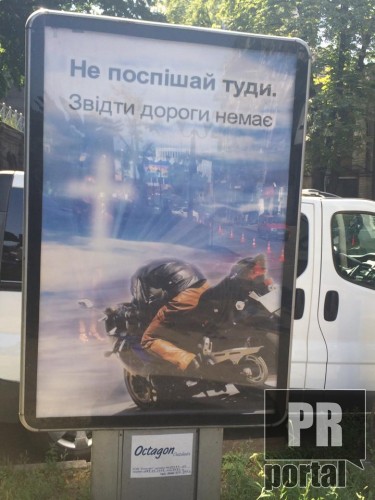 Социальная реклама в Киеве призывает мотоциклистов не спешить "туда".