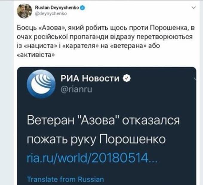 Не пожавший руку Порошенко ветеран "Азова" стал "звездой" росСМИ