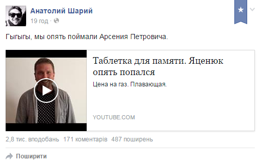 Популярний блогер Анатолій Шарій, кажучи про розрахунки прем'єра, нагадав про відео трирічної давності, де Яценюк критикує чинну владу за продаж населенню газу по 110 $.
