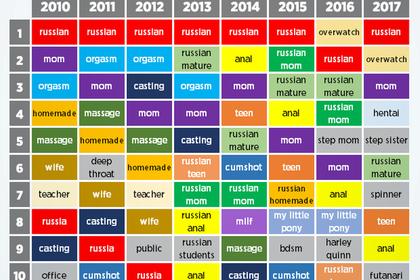 Чаще всего россияне забивают в поисковике PornHub слово «русские». Исключение составил 2016 год, когда в топ запросов вырвался косплей на видеоигру Overwatch.
