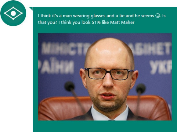 Цікаво, що робот, проаналізувавши фото мера Віталя Кличка, навіть зміг назвати його ім'я. З упевненістю в 99%, до речі. "Я думаю, цей чоловік, посміхаючись, дивиться в камеру. Я впевнений на 99%, що це Віталій Кличко".