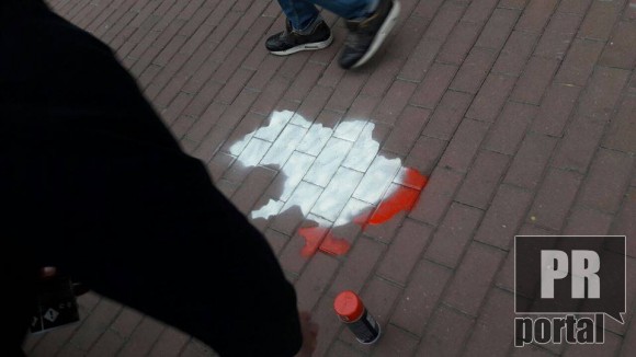 Київським студентам, котрі другий день проводять під стінами посольства Королівства Нідерландів інформаційну кампанію "Молодь за Європу", заборонили малювати на тротуарі криваву карту України.