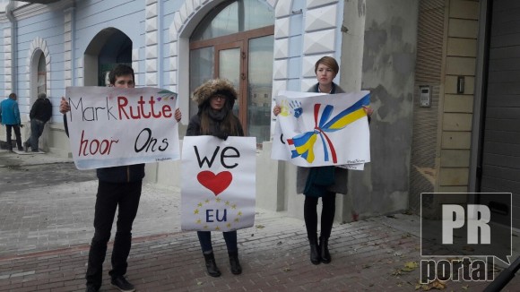 "Ми знову зібралися під посольством Посольство Королівства Нідерландів У Києві для проведення мирної акції. Нагадаємо, що вчора ми намалювали перед входом у посольство імпровізовану мапу України, оскільки небажання підписати асоціацію можна порівняти лише з брутальним розтоптуванням наших мрій і сподівань, нашого майбутнього, нашої країни. Ми хочемо щоб уряд Нідерландів та працівники дипломатичної місії відчули свою відповідальність за ті наслідки які можуть наступити для нас, для молоді, у разі не підписання угоди.