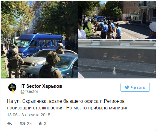 Пожарные и люди в камуфляже. В Харькове возле офиса Добкина произошли стычки
